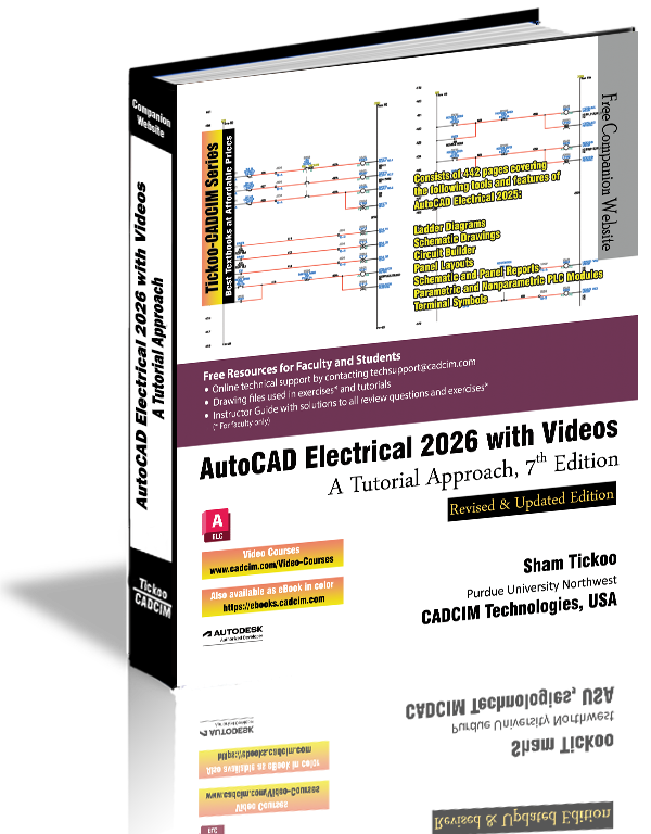 The AutoCAD Electrical 2026 with Videos: A Tutorial Approach is a tutorial-based book that introduces the readers to AutoCAD Electrical 2026 software, designed specifically for creating professional electrical control drawings. The book has a wide range of tutorials covering the tools and features of AutoCAD Electrical such as schematic drawings, panel drawings, parametric and nonparametric PLC modules, ladder diagrams, Circuit Builder,point-to-point wiring diagrams, report generation, creation of symbols, and so on. These tutorials will enable the users to create innovative electrical control drawings with ease. Moreover, the tutorials used ensure that the users can relate the information provided in this book with the practical industry designs. The chapters in this book are arranged in a pedagogical sequence that makes it very effective in learning the features and capabilities of the software.