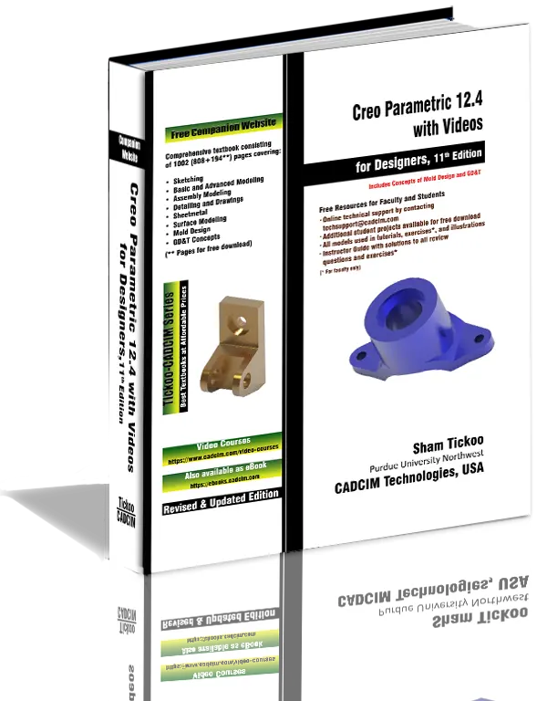 Creo Parametric 12.4 for Designers with Videos textbook is written to help the readers effectively use the modeling and assembly tools by utilizing the parametric approach of Creo Parametric 12.4 effectively. This book provides detailed description of the tools that are commonly used in modeling, assembly, sheetmetal as well as in mold design. This book also covers the latest surfacing techniques like Freestyle and Style with the help of relevant examples and illustrations. The Creo Parametric 12.4 for Designers book further elaborates on the procedure of generating the drawings of a model or assembly, which are used for documentation of a model or assembly. Also includes the concept of geometric dimensioning and tolerancing. The examples and tutorials are used in this book to ensure that the users can relate the knowledge of this book with the actual mechanical industry designs. Every chapter begins with a tools section that provides a brief information of the Creo Parametric tools. This approach allows the user to use this book initially as a learning tool and then as a reference material.